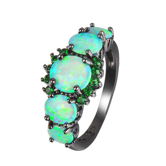 Cute Green Fire Oval Opal Rings