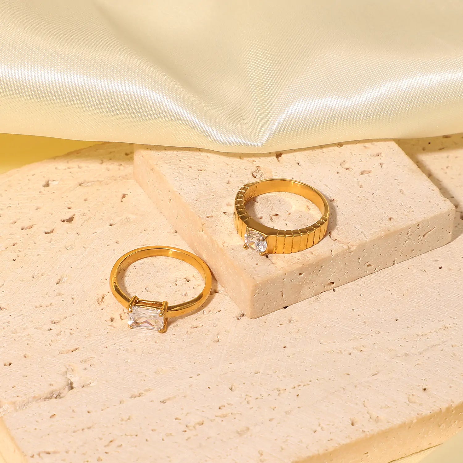 Durable Construction: Crafted with a strong stainless steel band and coated with 18k gold, these rings are not only beautiful but also built to last. Say goodbye to tarnishing and hello to long-lasting shine.